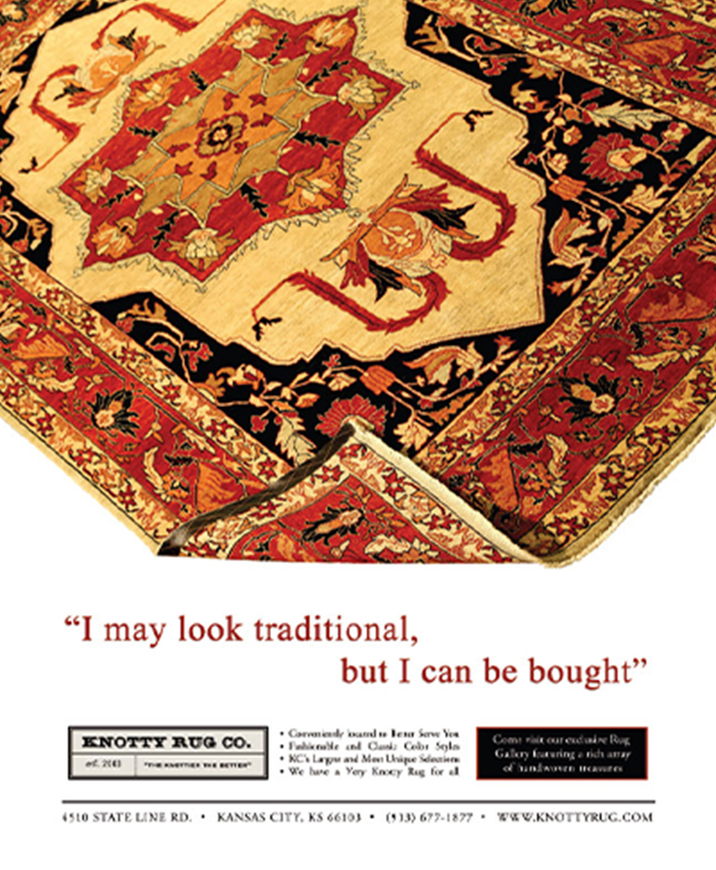 For over 20 years, The Knotty Rug has been the Midwest’s source for beautiful handmade rugs from all over the world. We guarantee you’ll always find a unique hand-knotted rug at our store, whether you’re looking for something new and modern or classically antique; every hand-knotted rug in our store is one-of-a-kind!